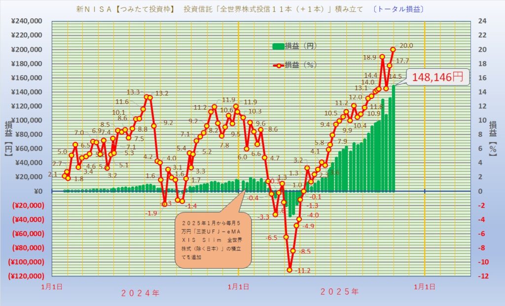 投資信託(新NISA つみたて投資枠)「全世界株式 11本(+1本)」積み立て