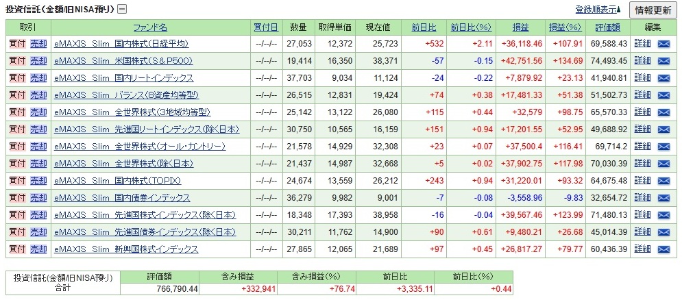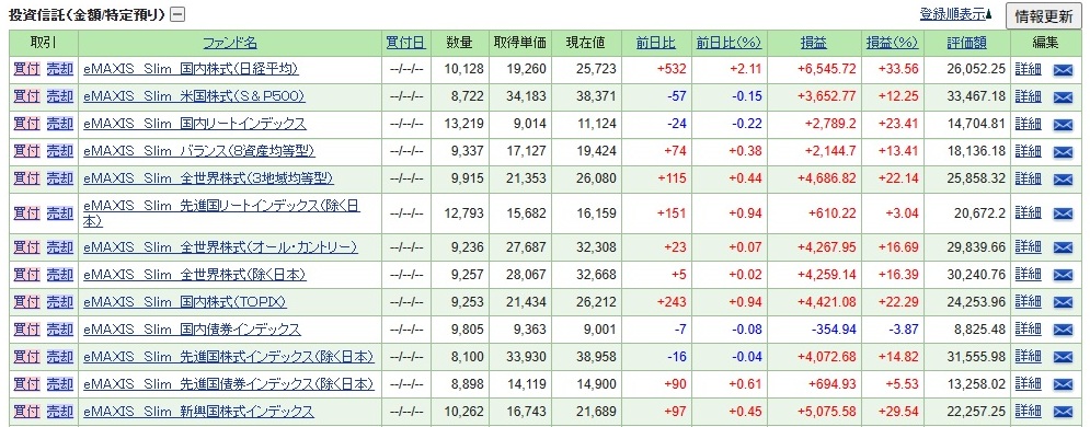 投資信託(旧NISA)「eMAXIS Slim 13本」積み立て