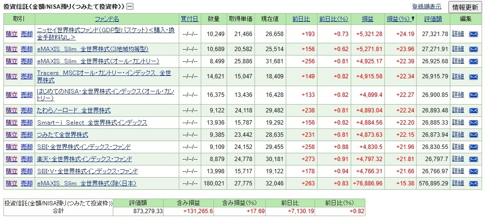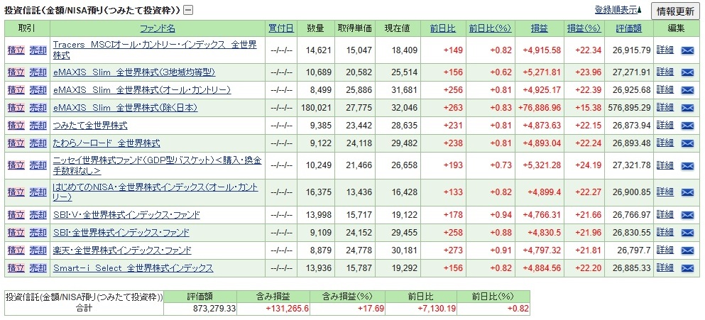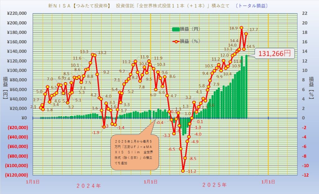 新NISA【つみたて投資枠】投資信託「全世界株式 11本(+1本)」積み立て
