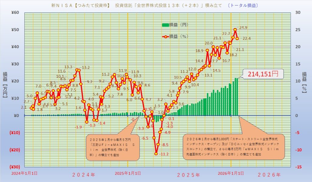 13本(+2本)全体の損益(2026年1月23日現在)