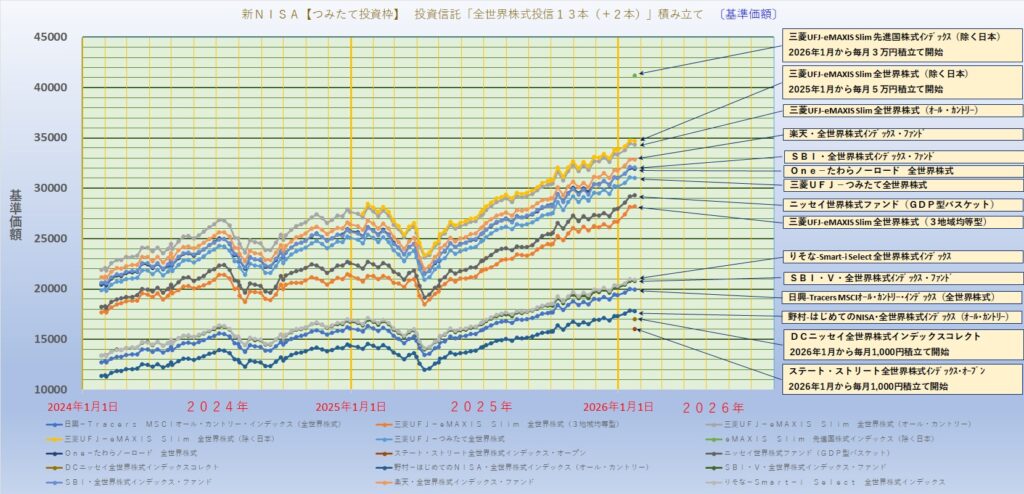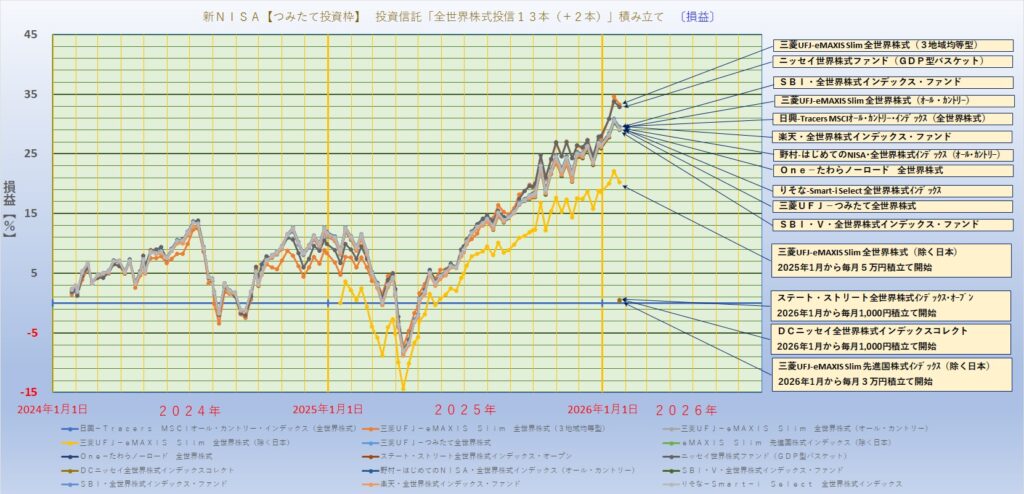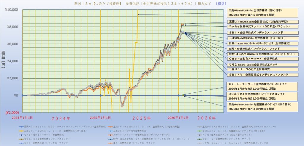 新NISA【つみたて投資枠】投資信託「全世界株式 13本(+2本)」積み立て