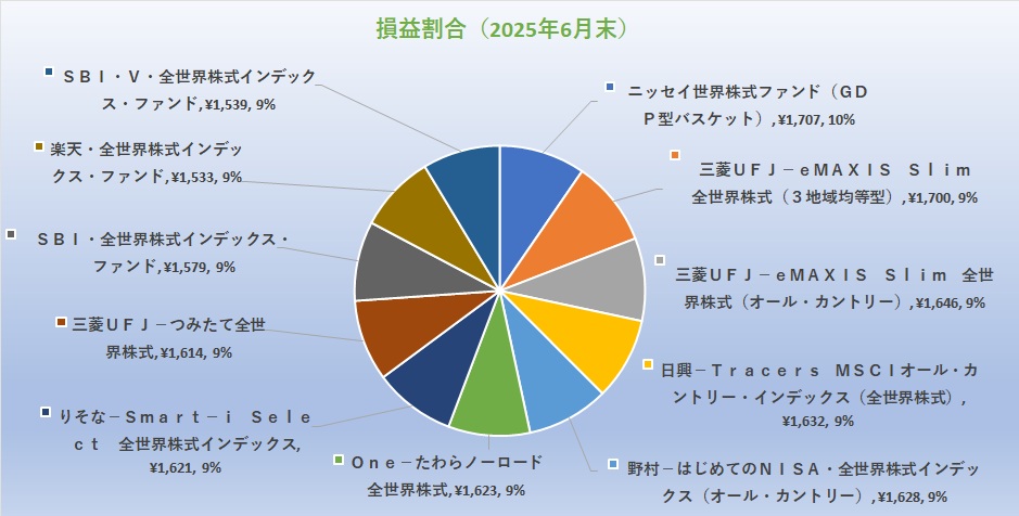 トータル利益中に占めるそれぞれのファンドの利益割合を示します。