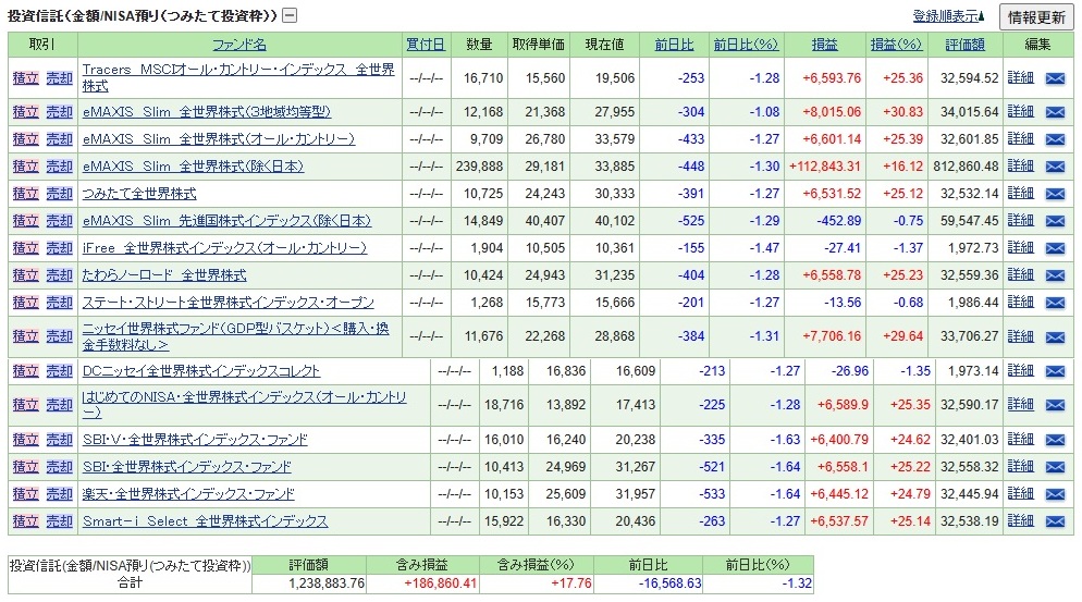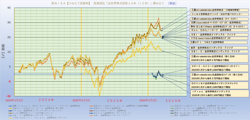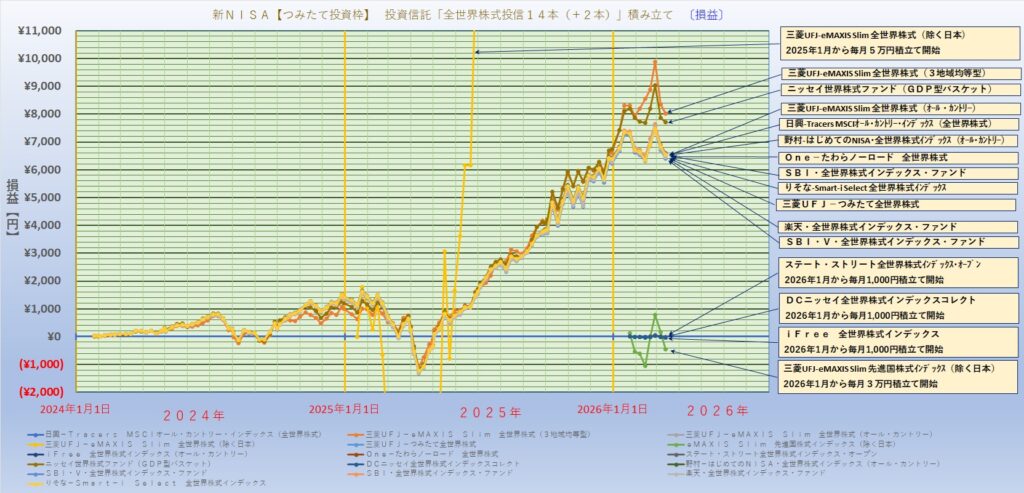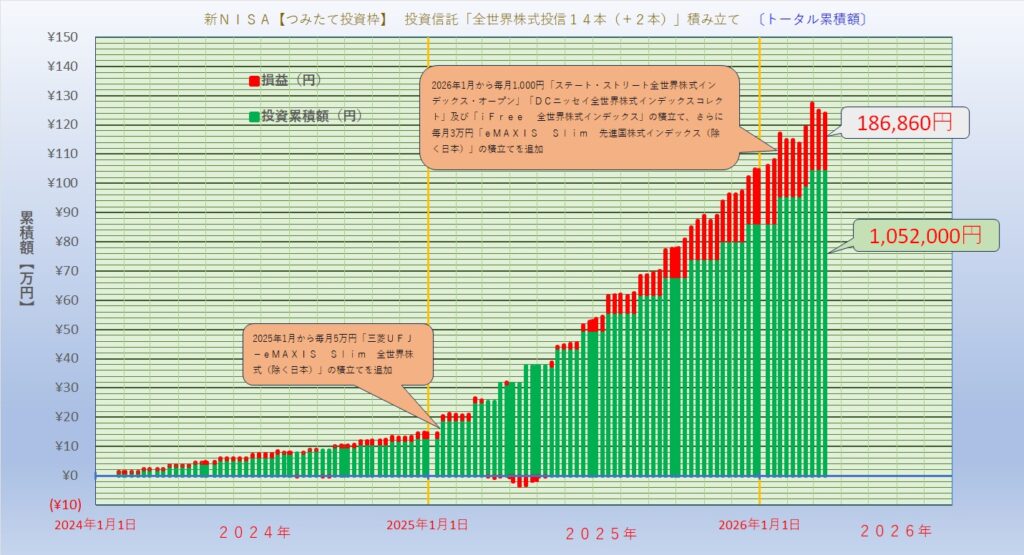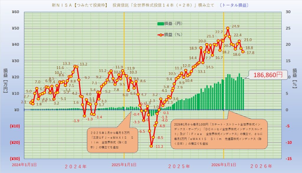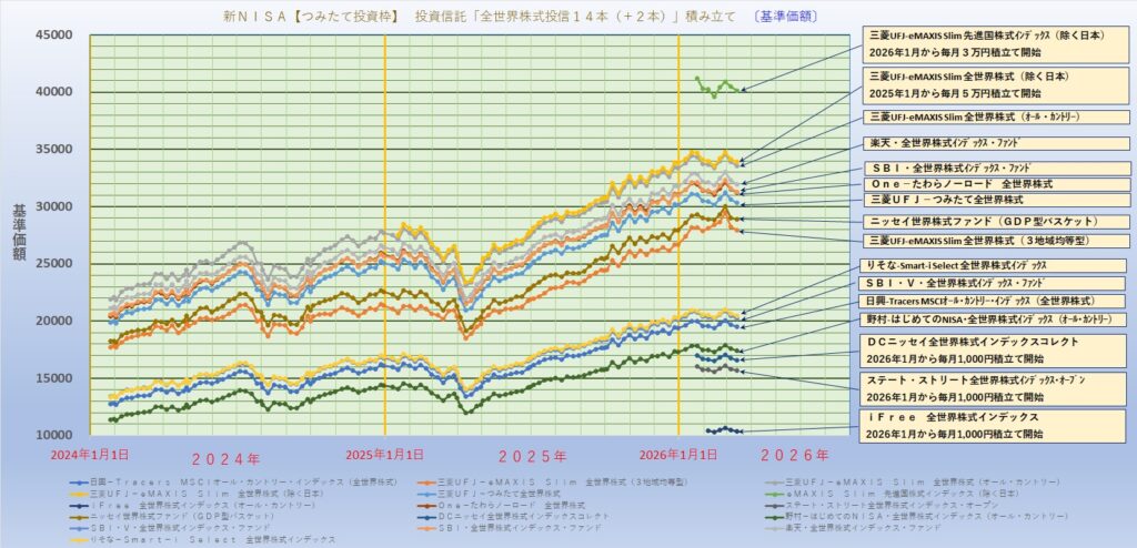 新NISA【つみたて投資枠】投資信託「全世界株式 14本(+2本)」積み立て