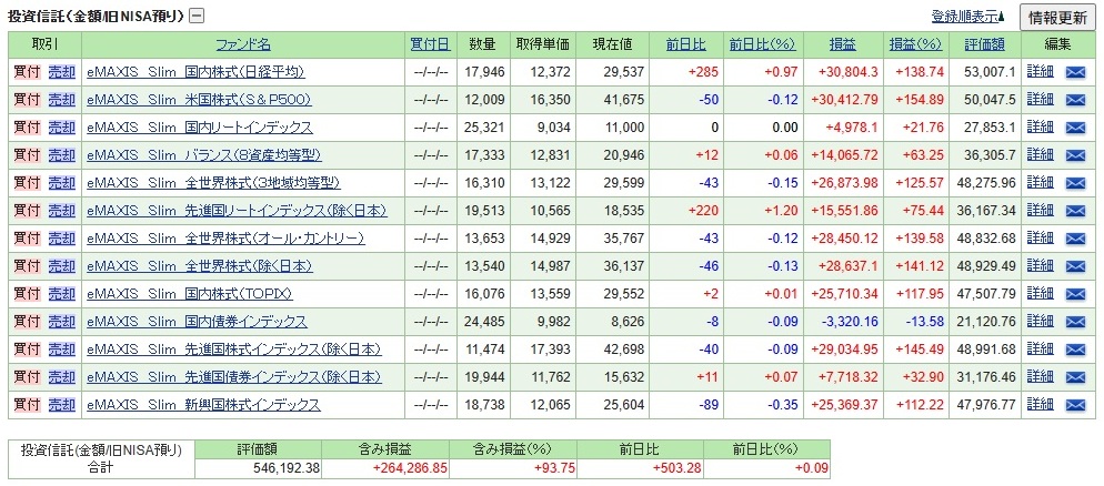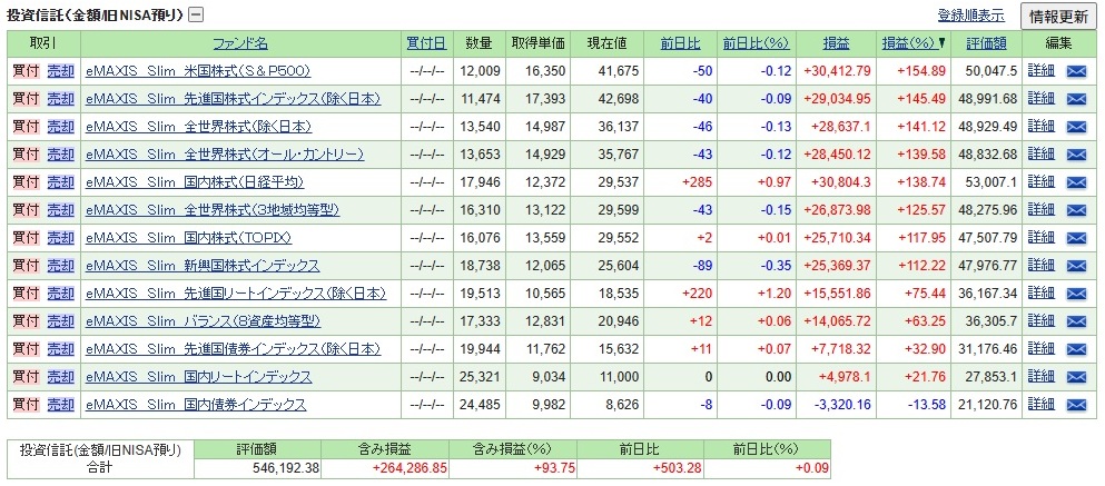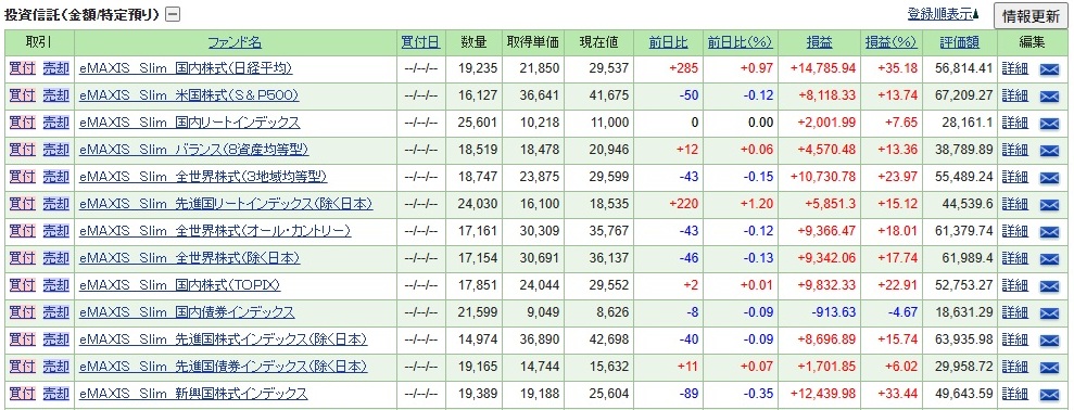 旧NISA【一般NISA】投資信託「eMAXIS Slim 13本」積み立て