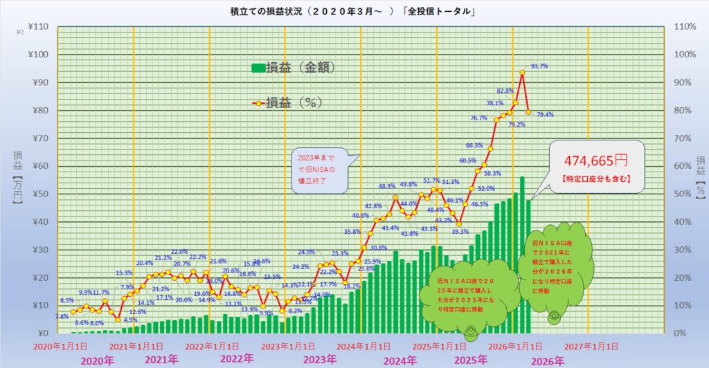 旧NISA口座で2020年に積立て購入した分が2025年になり特定口座に移動となりました。